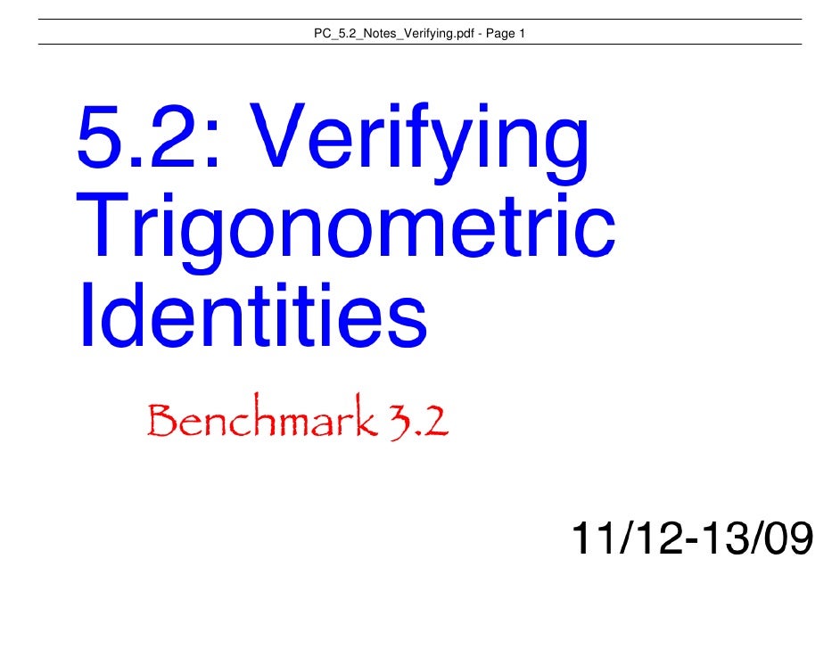 Verifying Trigonometric Identities Pdf. Finan 18 verifying trigonometric identities in this section, you will learn how to lecture notes trigonometric identities page sample problems prove each of the following identities. To prove (or verify) that a trigonometric.