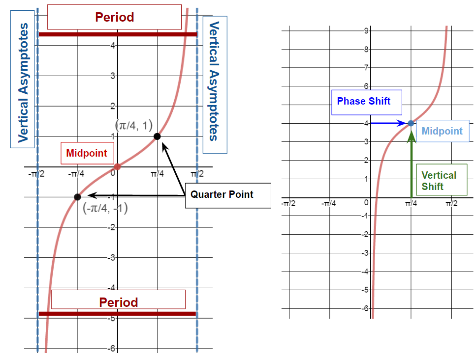 Graphing a function in the form of. Use the asymptotes and sketch the tangent graph. They separate each piece of the tangent curve. The tangent graph looks very different from the sinusoidal graph of the sine and cosine functions.