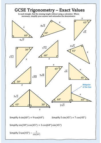 This video is part of the pythagoras and trigonometry module in gcse maths, see my other videos below to continue with. Exact value of 30 sin. Log in (for teachers only). Standard values of trigonometry, graph functions, required formulas.