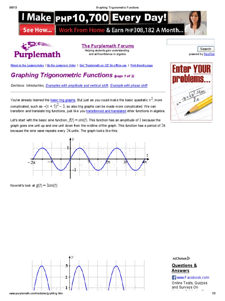 Trigonometric graphs will be transformed as the functions change. As sides of a explain how the unit circle in the coordinate plane enables the extension of trigonometric functions to all real numbers, interpreted as radian. Full curriculum of exercises and videos. The free basic trig functions software from math teacher's resource is an effective and dynamic tool for teaching the core concepts of trigonometry.