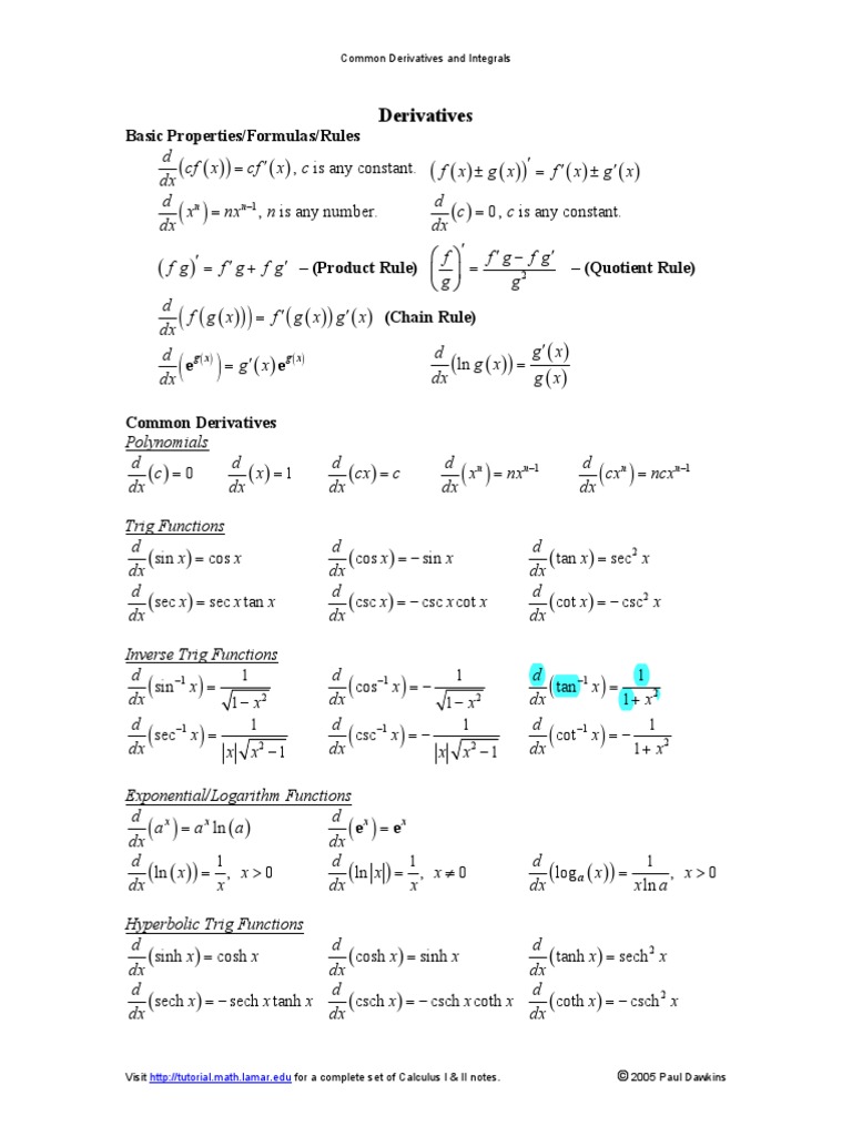 Derivatives, integrals, and properties of inverse trigonometric functions and hyperbolic functions (on this handout, a represents a constant, u and x represent variable quantities). However, this can be also done using the chain rule for differentiating a composite function Or is there some section i missed, where they are explained more intuitively? Integrals from expressions involving trigonometric functions appear quite often.